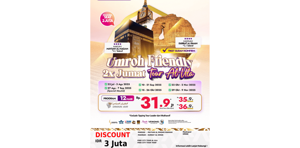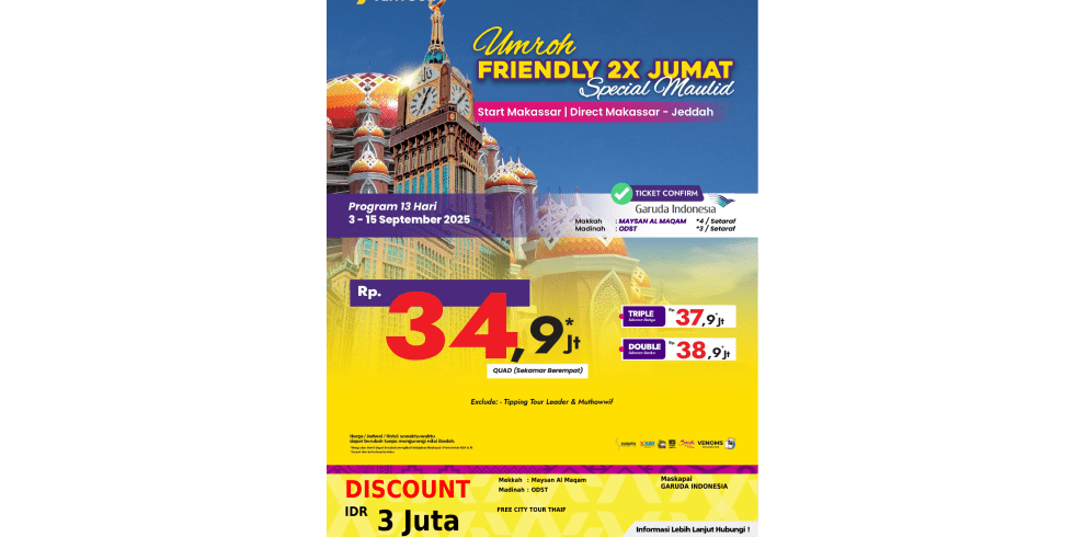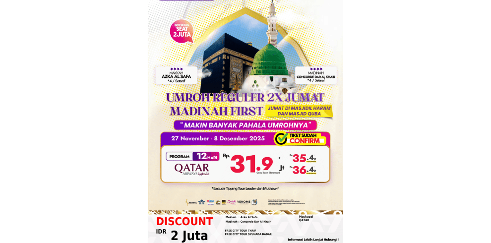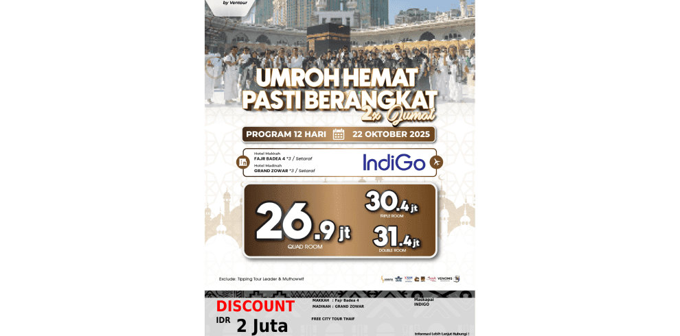 📲 Pesan via WhatsApp. Nikmati pengalaman umroh yang nyaman dan penuh makna bersama Berkah Tour x VENTOUR.